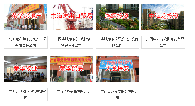 廣西海龍投資集團有限公司座落于美麗的具有“西南門戶,邊陲明珠”之稱的廣西濱海城市防城港市,是由防城港市榮華房地產開發有限責任公司、防城港市鴻輝投資開發有限公司、廣西防城港市東海進口貿易有限公司、廣西中海龍投資開發有限公司、廣西榮華物業服務有限公司、廣西榮華貿易有限公司、廣西天龍保安服務有限公司聯合組成的,注冊資本2160(萬元)人民幣,實際固定資產已達兩億元人民幣;公司員工達500多人;集團董事長彭國輝先生。